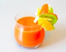 Pri pripravovaní tejto šťavy zistíte, že kiwi nemusí vždy uplatniť svoju krásnu zelenú farbu, pretože ju tento krát pohltí oranžová na druhú jemne zelenkavá šťava z ľadového šalátu.